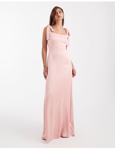 Maids to Measure Bridesmaid tie shoulder maxi dress in blush pink