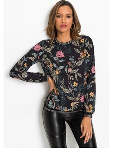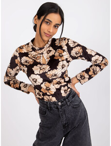 ITALY MODA Černo-béžová halenka Skyler s kapkovým průstřihem - Květinový vzor