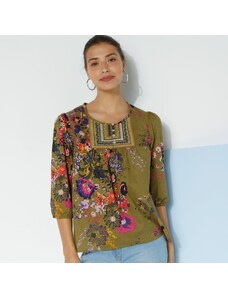 Blancheporte Halenka s výšivkou a květinovým potiskem mechová/purpurová