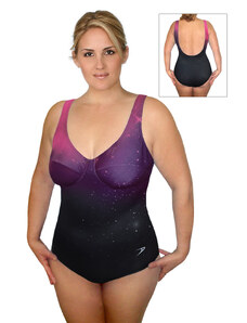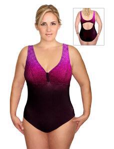 Ramisport Dámské plavky jednodílné pro plnoštíhlé s kosticemi P38 t806 černofialové
