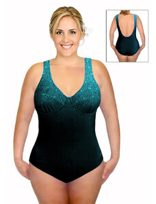 Ramisport Dámské plavky jednodílné pro plnoštíhlé s kosticemi P38 t806 černomodrozelená