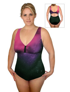 Ramisport Dámské plavky jednodílné pro plnoštíhlé s kosticemi P38 t806 černorůžová