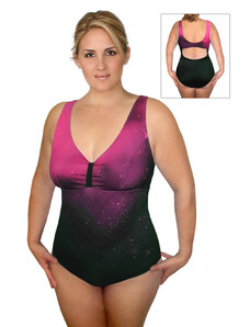 Ramisport Dámské plavky jednodílné pro plnoštíhlé s kosticemi P38 t185 černorůžová