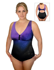 Ramisport Dámské plavky jednodílné pro plnoštíhlé s kosticemi P38 t166 tmavě modrá s fialovou