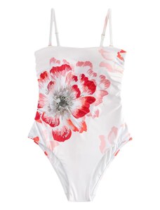 ASOS DESIGN Celestie square neck low back swimsuit with pink sun motif in damson-Red