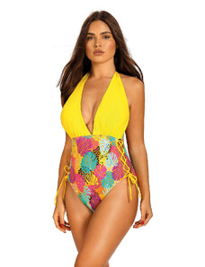 MARKO COLLECTION Žluté květované plavky s vázáním na zádech Rada Žlutá