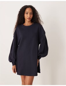 ASOS DESIGN cotton trapeze sweat mini dress in navy