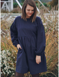 MINILE Šaty Simple Puff Seersucker Dark Blue - L