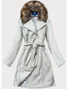 Ann Gissy Šedý dámský kabát s kožešinou (JC241)