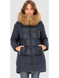 Perso Tmavě modrá dámská péřová prošívaná bunda s kapucí