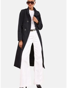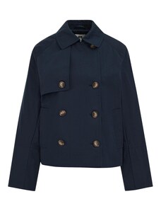 Perso Tmavě modrý dámský elegantní krátký kabát s kapsami Tmavě modrá
