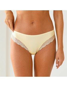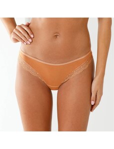 Blancheporte Sada 3 kalhotek tanga z bavlny a krajky karamelová+kaštanová+vanilková