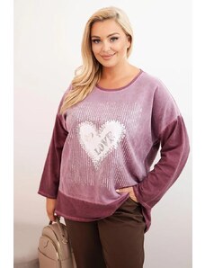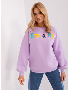 MladaModa Oversize mikina s potiskem srdce a šňůrkami vzadu model 1507 světle fialová