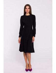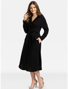 STYLOVE S378 Rozšířené šaty s páskem - černé