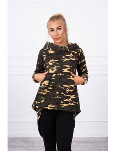 MladaModa Maskáčová mikina s prodlouženou zádí model 9119 barva khaki+hnědá