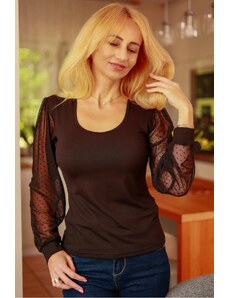 K-Fashion Dámská blůza z viskózy přiléhavá s řasením a broží hnědá