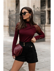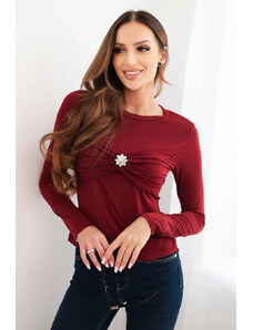 K-Fashion Dámská blůza z viskózy přiléhavá s řasením a broží bordó
