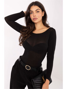K-Fashion Pletená kombinézová halenka s tylovými rukávy černá