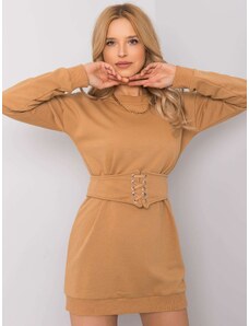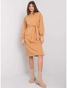 Camel ribbed midi dress .