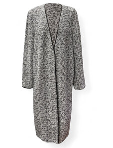 Lenbutik Dlouhý kardigan Aga – šedo-bílý melír s černým lemováním