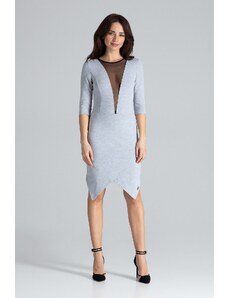 LENITIF Šedé šaty s výstřihem ze síťoviny Šedá