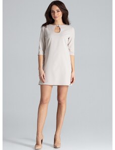 LENITIF Béžové šaty se zapínáním u krku Béžová
