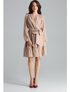 LENITIF Elegantní šaty s výstřihem do V Béžová