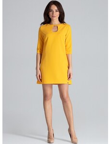LENITIF Žluté šaty se zapínáním u krku Hořčicová