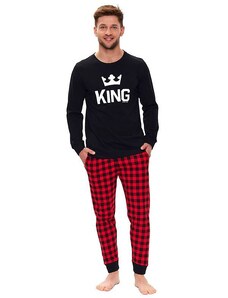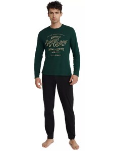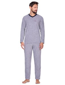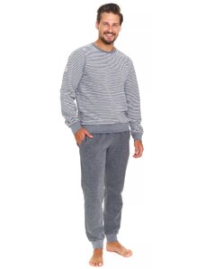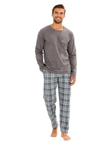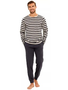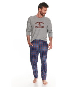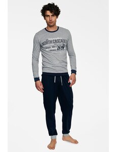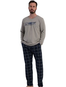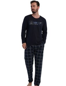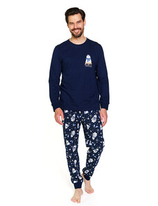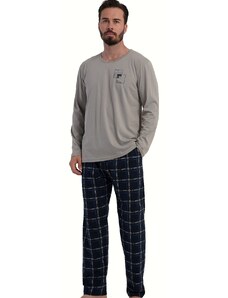 Pánské bavlněné pyžamo Leptir, které je vyrobené z velmi kvalitní bavlny. Blůza pyžama má dlouhé rukávy a její přední díl je ozdobený jemným potiskem. Komplet doplňují dlouhé jednobarevné kalhoty. Vhodné i na běžné nošení.