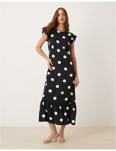 Nobody's Child Clara frill sleeve midi dress in black and white spot