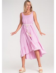 FIGL Dámské růžové bavlněné šaty s proužky a třásněmi Růžová