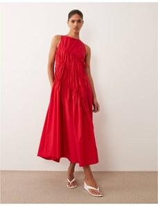 Ghospell sleeveless drawstring detail ruched midi dress in red