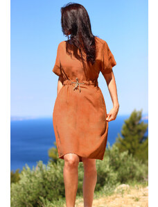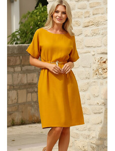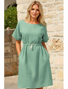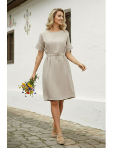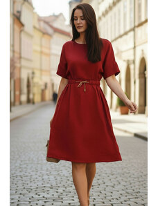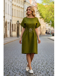 Autorské české šaty s netopýřími rukávy jsou ušité ze 100 % lnu, tkaného u nás, v Evropě. Koupí produktů, který je regionální, snižujete svou uhlíkovou stopu a pomáháte planetě. Len je přirozeně antibakteriální a má skvělé termoregulační vlastnosti, což oceníte nejen v létě. Šaty jsou velmi pohodlné. Svým univerzálním, nadčasovým střihem padnou každé postavě a neomezují v pohybu. Přinechané netopýří rukávy končí v širší manžetě. Aby oblečené nepůsobily pytlovitě, mají v pase provlečený provázek jako pásek. Provlečený provázek působí jako správný doplněk a dodá Vám v šatech pocit, že léto není daleko. Rovněž jím můžete šaty ještě trochu projmou a přizpůsobit. Univerzální délka áčkové sukně na kolena Vám dovoluje k šatům nosit jak ploché boty, tak podpatky. Praktické ženy jistě ocení nenápadné kapsy všité do bočních švů. Přestože jsou šaty perfektní na léto, kombinací s dalšími doplňky s nimi rázem vykouzlíte i outfity na jiná roční období. Kam v nich vyrazíte, necháme na Vás. Modelka na fotografii měří 170 cm. Materiál : 100 % len vyrobený v Evropě, certifikovaný OEKO-TEX Standard 100 Vyrobeno v České republice