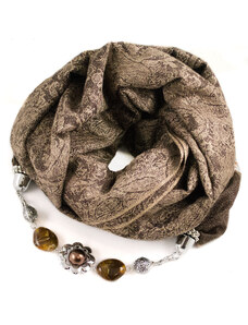Magotex Šála pašmína s bižuterií - hnědá