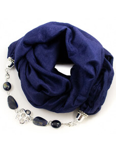 Magotex Šála pašmína s bižuterií - tmavě modrá