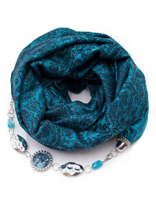 Magotex Šála pašmína s bižuterií - tyrkysová s černým vzorem