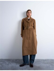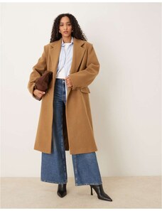 Topshop belted formal longline coat with wool in camel-Neutral
