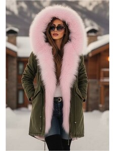 Fashionweek Dámská zimní parka khaki z kožíšku K6205-3