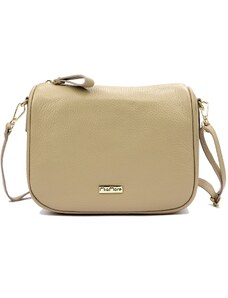 Italská kožená crossbody kabelka, ušitá z přírodní kůže. Kabelka má klasický tvar, je prostorná a praktická. Kabelka je rozdělena na tři přihrádky a každá z nich se uzavírá samostatným zipem. Uvnitř prostřední přihrádky je uzavíratelná kapsa na různé drobnosti. Vnitřní část kabelky je podšitá pevnou látkovou podšívkou odolnou proti oděru. Model má nastavitelný popruh. Kování a logo na tašce je ve stříbrné barvě.