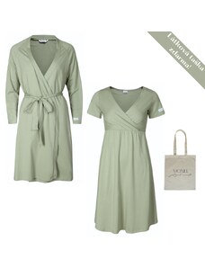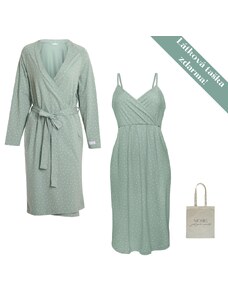 Moniel košilka + župan souprava do porodnice pro maminku Pastel mintová