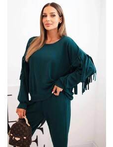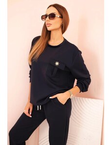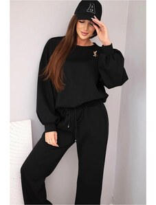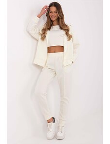 Elegantní dámský komplet s viskózou je ideální kombinací klasiky a modernosti. Sako s jednoduchým střihem a ozdobným motivem z kamínků na hrudi dodává stylingu jedinečný charakter, a pohodlné kalhoty s elastickým pasem a jemným zdobením tvoří souvislý a stylový celek. Je to vynikající souprava pro mnoho příležitostí - do práce, na setkání či na každodenní vycházky.
