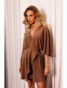 Moe M631 Zavinovací svetrové šaty s vázáním - vřesové