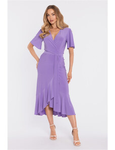 Moe M912 Zavinovací midi šaty s volánem a řasením - světle fialové