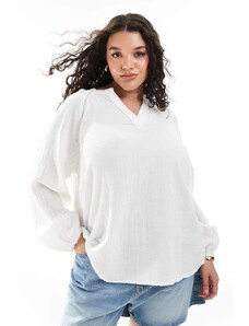 ONLY Curve cheesecloth v neck blouse in white