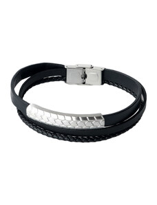 Sam's Artisans Kožený náramek Black & Steel chirurgická ocel INRM047