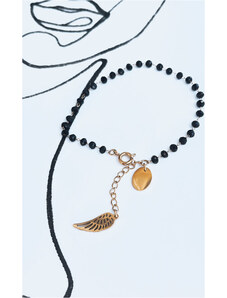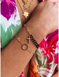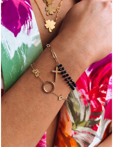 BASIC Černo-zlatý korálkový náramek s křížkem HESSA Černá