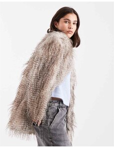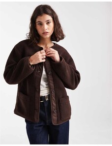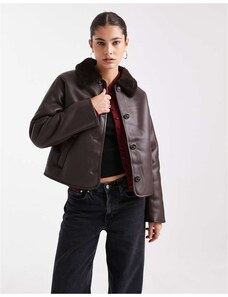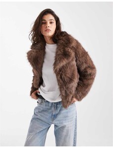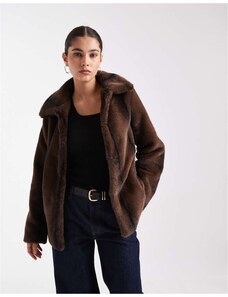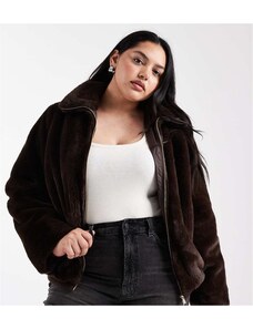 New Look Plus New Look Curve faux fur zip up jacket in brown