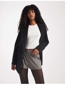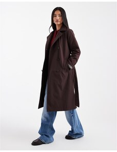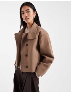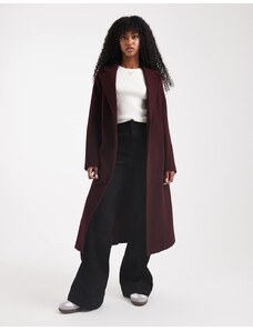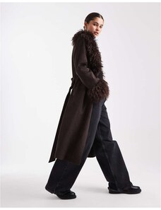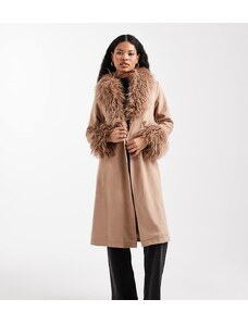 New Look Petite belted faux suede faux fur mixed coat in brown-Neutral