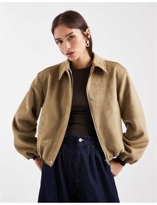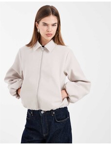 New Look Plus New Look Curve soft touch quilted jacket in stone-Neutral