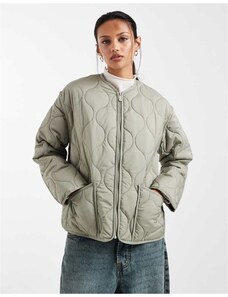 New Look Plus New Look Curve quilt padded jacket in khaki-Green